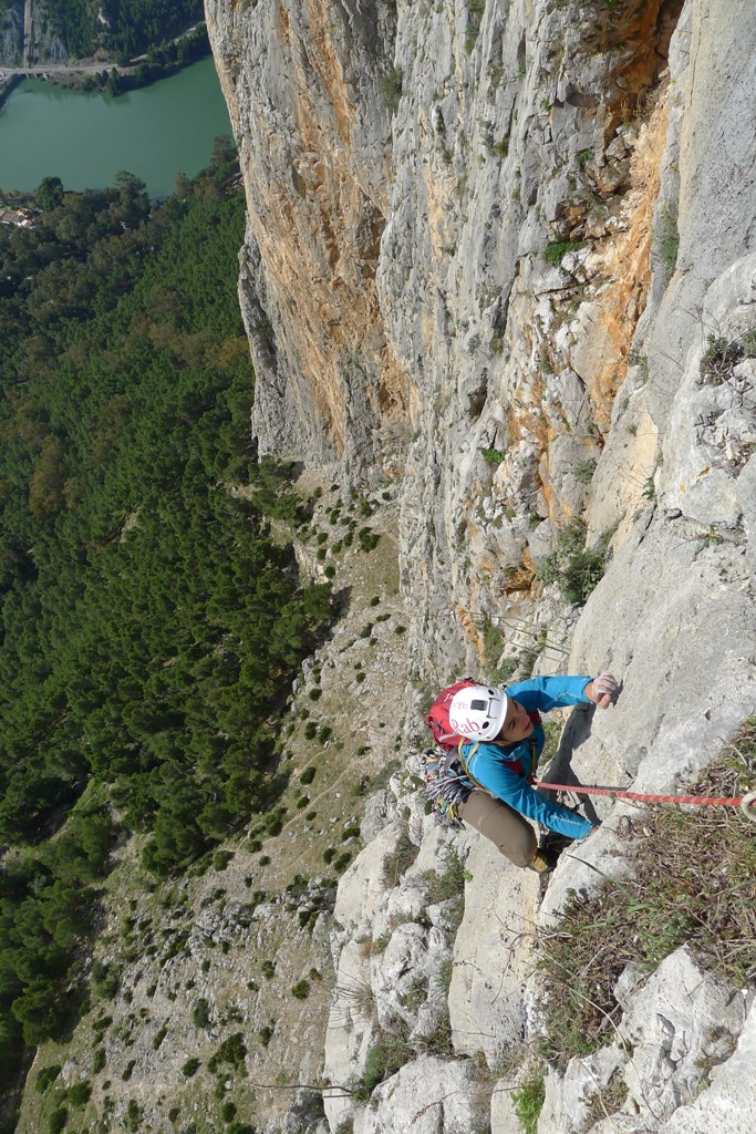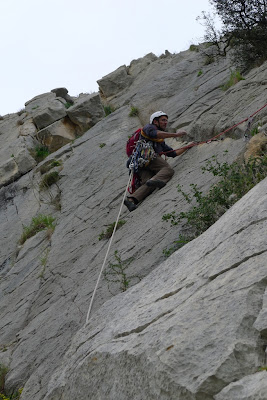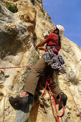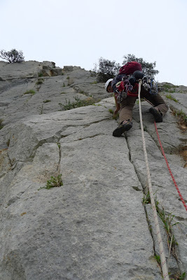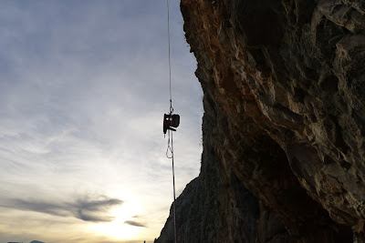 No primeiro largo do dia, tivemos direito a atirar uns calhaus pelo ar sem qualquer preocupação, já que àquela hora ainda não havia nenhum escalador lá por baixo.